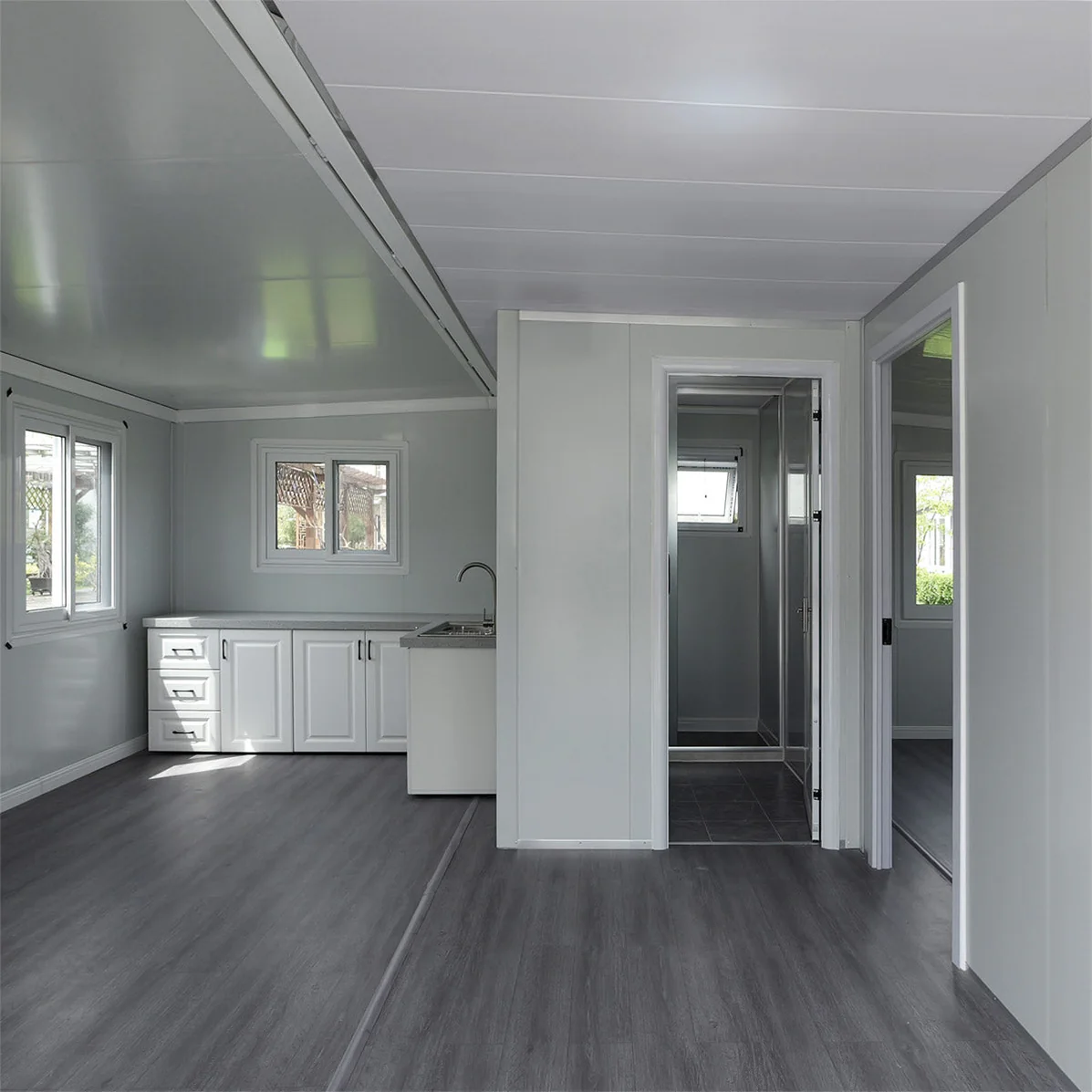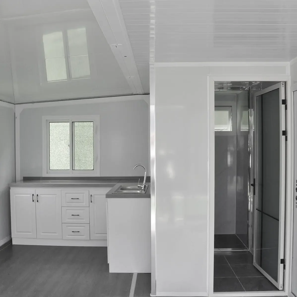 Built with high-quality materials, this prefabricated container home ensures strength and insulation: