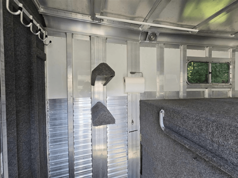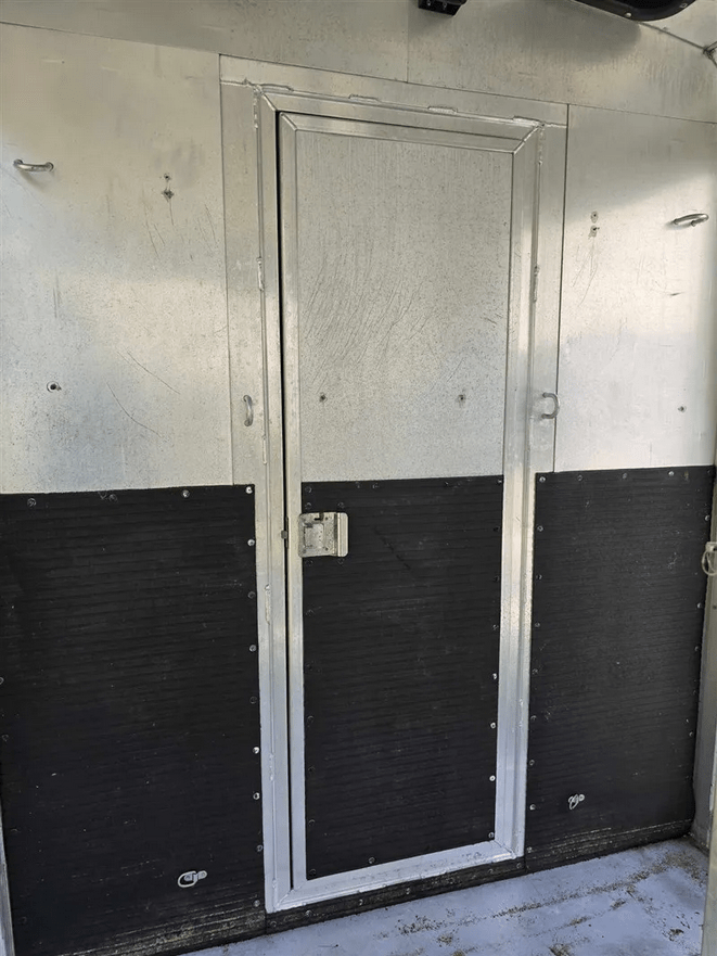 2000 C&C 2 horse all aluminum trailer with ramp & dressing room. 7’6″ inside height for tall horses. Trailer has a 2 camera system with in truck monitor, 11′ awning, new aluminum rims, almost new heavy duty trailer tires, fans on each horse, spare tire, custom screen for back opening. 2 escape doors, 2 saddle racks, bridle hooks, walk thru door to horse area. Axels blocked to accommodate newer trucks. All new LED lights. Solid, quality built trailer. Pulls great, horses load easily.