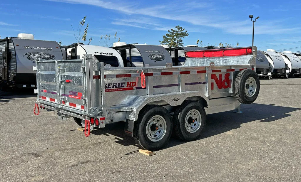 2024 N&N Trailers 7×14 14K Galvanized Hydraulic Dump Trailer w/Ramps, 2-Way Spreader Gate, Tarp Kit.