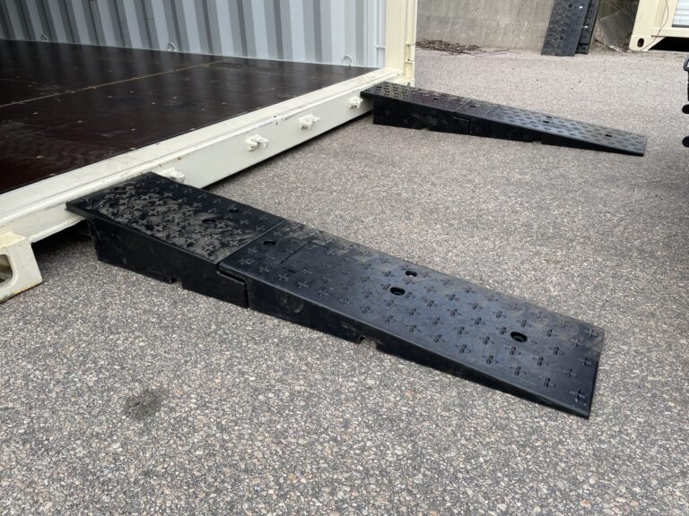 The standard container ramp is designed to be a lightweight removable ramp that enables wheeled equipment to access the container from normal ground level and to assist loading and unloading of materials and equipment.